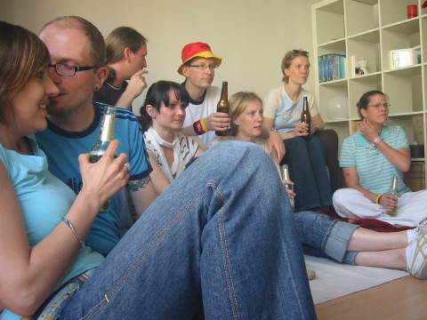 Evelyn, Thomas and friends watching Germany vs. Sweden (2:0). |