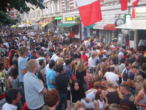 everybody was pretty nervous. Was it really better to play versus Sweden than England? Evelyn and Thomas invited a couple of friends to a balkony BBQ and living room beer in front of the tv. And Lukas Podolski was invited too, by the Swedish to shoot some goals.... 2:0, a victory with routine... During the match there was really nobody on the streets, but after the match Hamburg was a huge party. We went into the city to watch the decision of our next opponent, Argentina or Mexico? Of course I expected Argentina to win, but it wasn't that easy for them...1:0 in the extension time. Juan, see you next Friday in Berlin! |