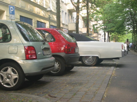 The difference between Europe and North America: Opel Corsa and a Cadillac. |