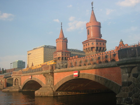 The 'Oberbaumbrücke', in the background (yellow) the Universal Music Group building. |