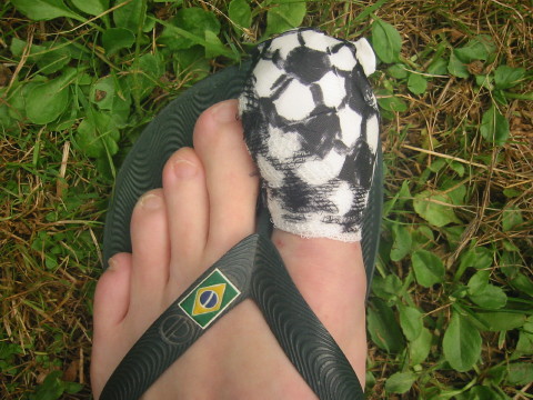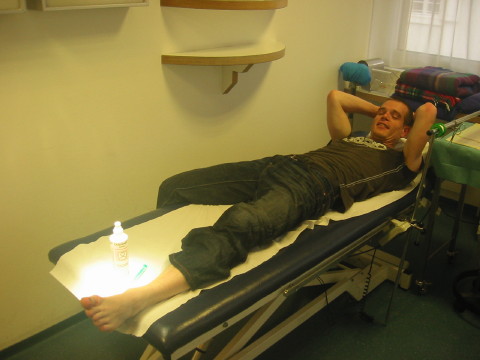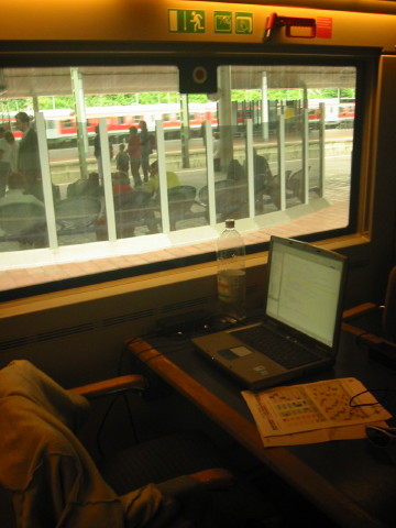 a small room with power outlets, 4 chairs and a table for me alone. Arriving in Heidelberg my father picked me up at the train station. As he is a doctor I took the chance to let him operate my toe nail that I broke in February...hell, I shit my pants! The afternoon we spent at my mother place to meet my close family (brothers, grandmother, oncles and aunts). And of course we had a TV for watching the games, what do you think? |